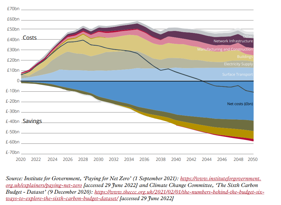Capital expenditure and operational savings during the transition to net zero by 2050